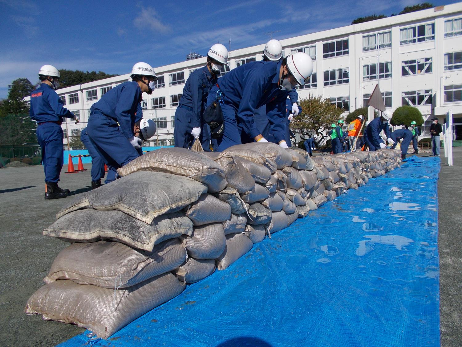 土のう工法、浸水防止工法訓練