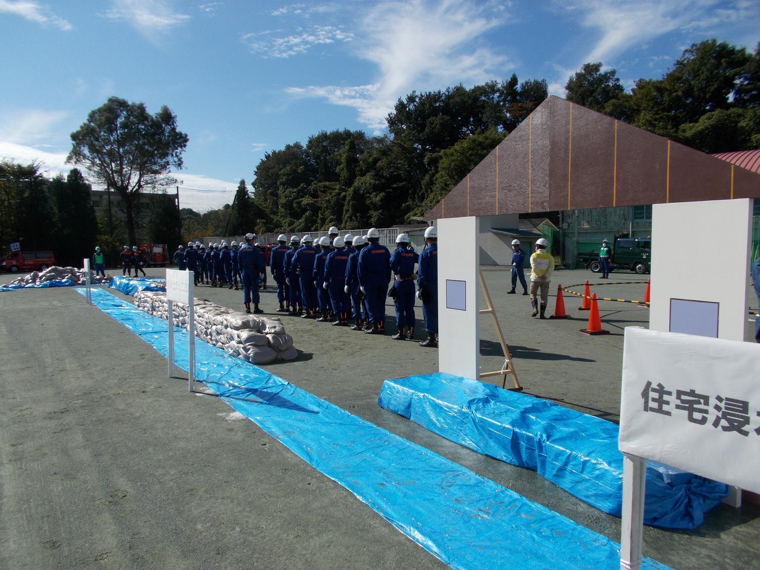 • 積み土のう工法、住宅浸水防止工法の作業がすべて終わり、水防工法の訓練が終了しました。