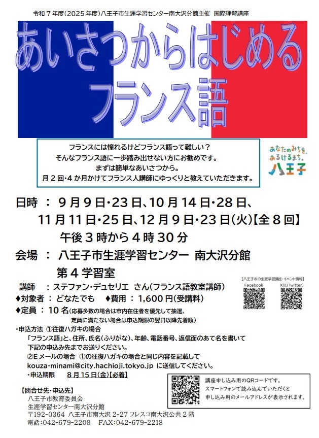 メールアドレス:kouza-minami@city.hachioji.tokyo.jp