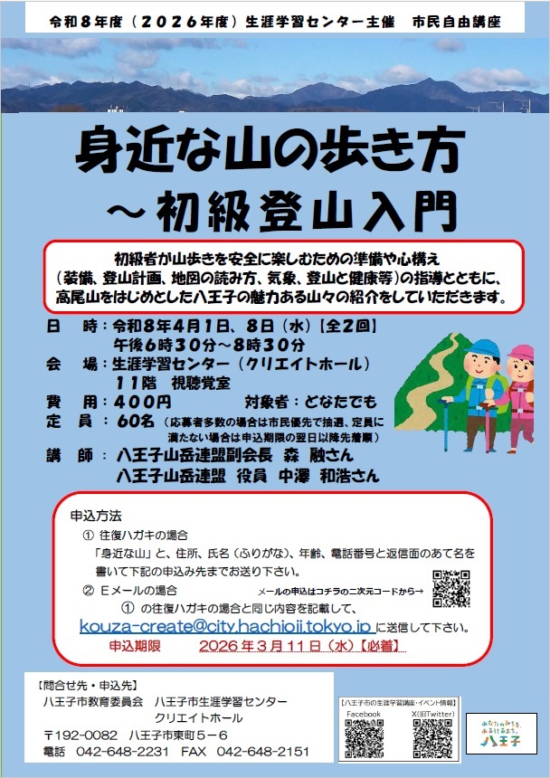 - トップ > イベント情報 > 講座・教室 > 市民自由講座「身近な山の歩き方~初級登山入門」