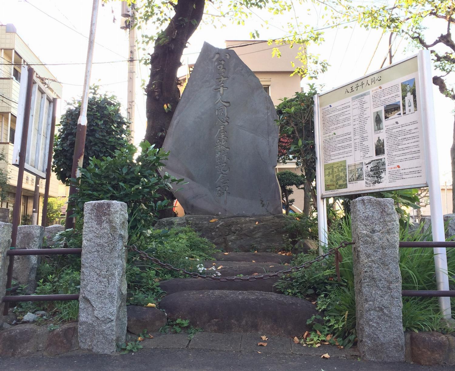 徳川家康は江戸へ敵が入ってこないように、八王子に武士団をおいて、甲州街道の見はりをさせました。これが千人同心のはじまりです。同心とは江戸幕府の下級役人をいいます。最初は約250人、後に500人、後に1000人に増やされ、100人の組が10組あって、千人になることから、千人同心といわれました。組の頭は、現在の千人町周辺に住み、同心たちの多くは、周辺の村に住んで農業をして生活をしていました。同心たちの主な役目は、家康をまつる日光東照宮の火の番(見回りや消火活動)でした。他にも、幕府から命令があると出動しました。後に、千人同心が日光を守ったことを記念して、日光市と八王子市は昭和49年に姉妹都市になりました。千人同心の中には、学者や、医者として有名な人もたくさんいました。