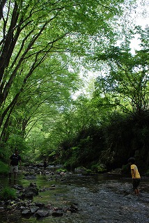 園内を流れる川で水遊びを楽しめる夏(写真右)