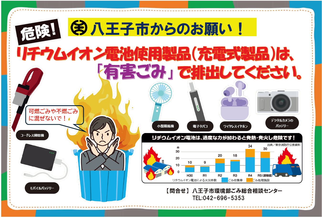 リチウムイオン電池などの小型充電式電池は可燃ごみや不燃ごみに混ぜないで