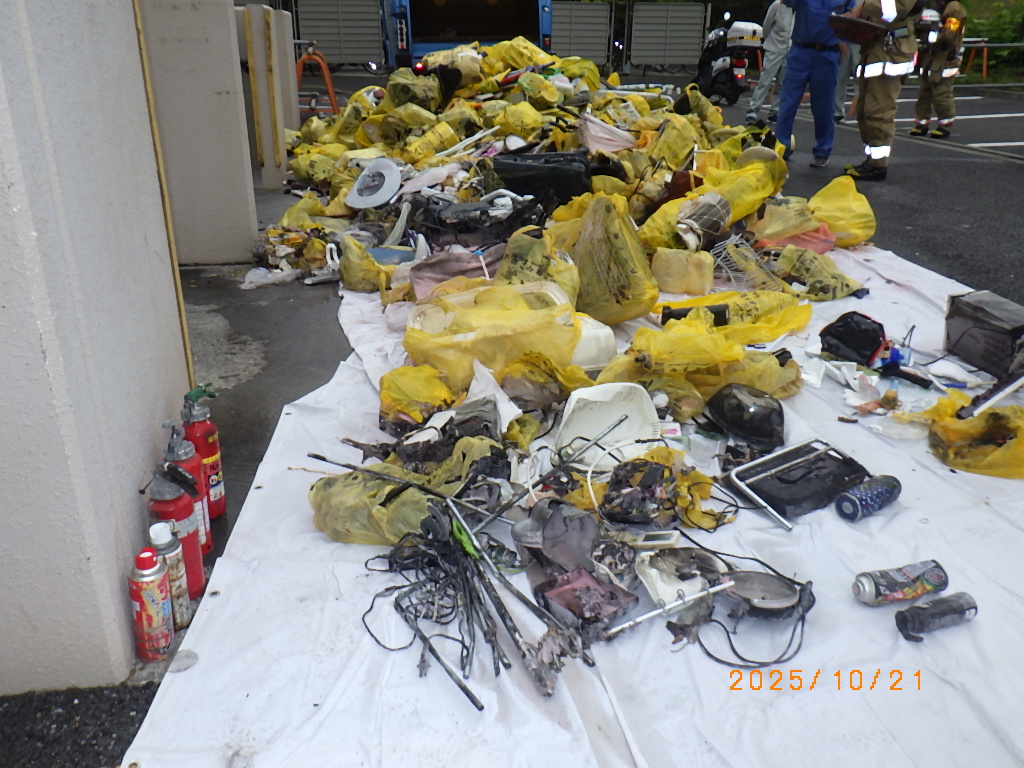 不燃ごみに混ぜて出されたリチウムイオン電池使用製品がごみ収集車の中で押しつぶされて発火し、火災事故につながりました。