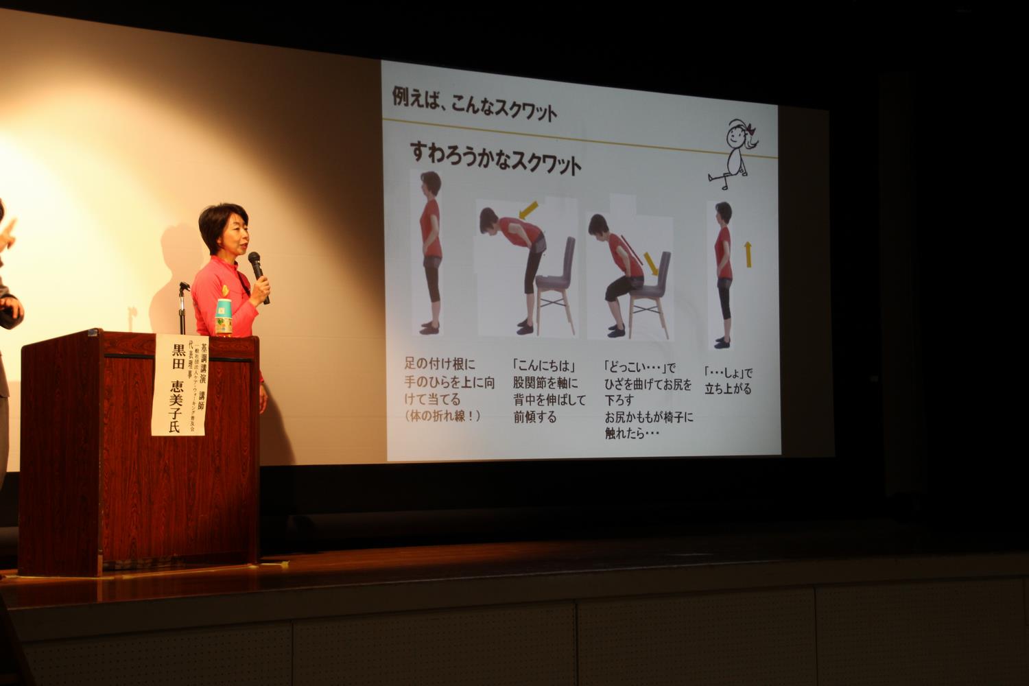「みんなで楽しむ活動づくり」をテーマに、地域の中で仲間とともに健康づくり活動に取り組む際のポイントや自宅でも簡単に取り入れられる体操等について、ご講演いただきました。
