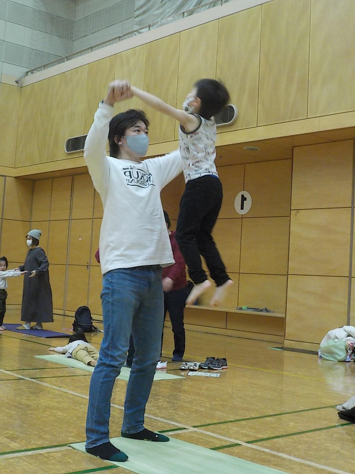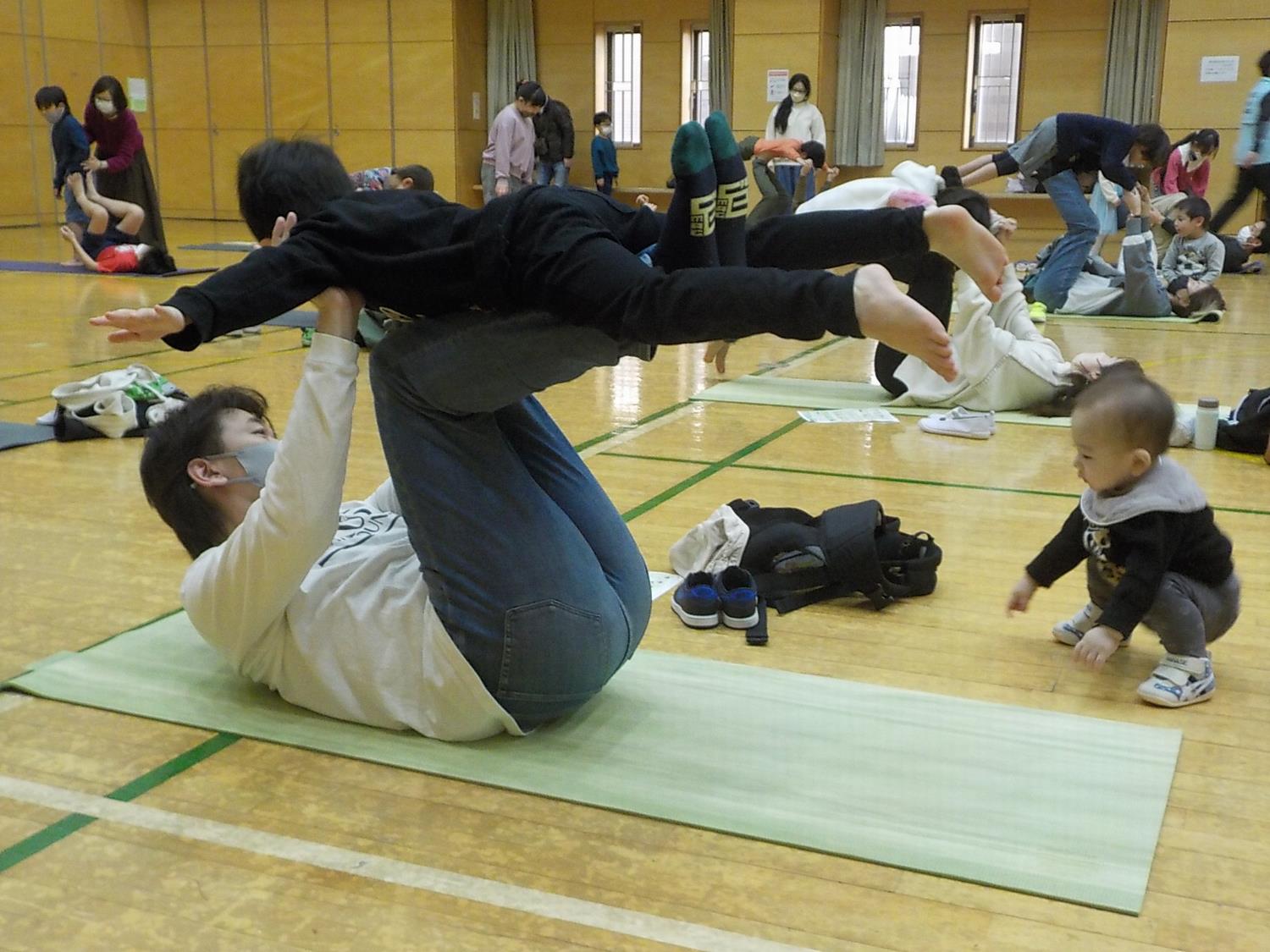 全身を使ったお子さんとのからだあそびを通して、親子のコミュニケーションを図るだけでなく、保護者の方の健康づくりにつながるプログラムを体験していただました!