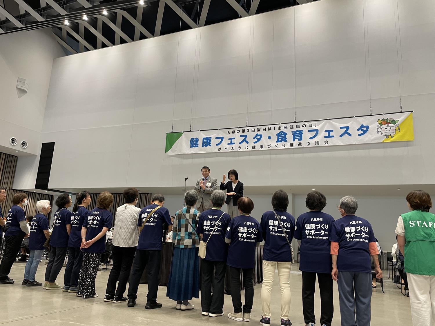 このたび、10周年を記念し、令和7年5月18日(日)に開催された「2025健康フェスタ・食育フェスタ」開会式において、八王子市長よりその功績が表彰されました。