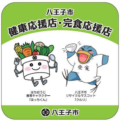 はちおうじ健康応援店、八王子市完食応援店の両方に取り組んでいる店舗は、緑のステッカーが目印です。