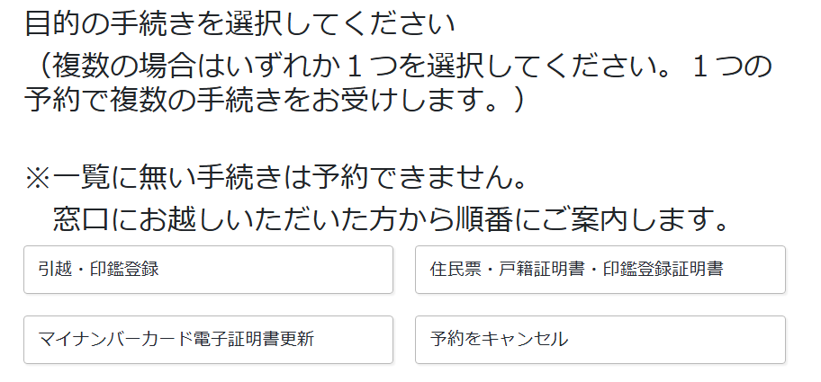予約サイトにアクセスし、希望する手続きを選んでください