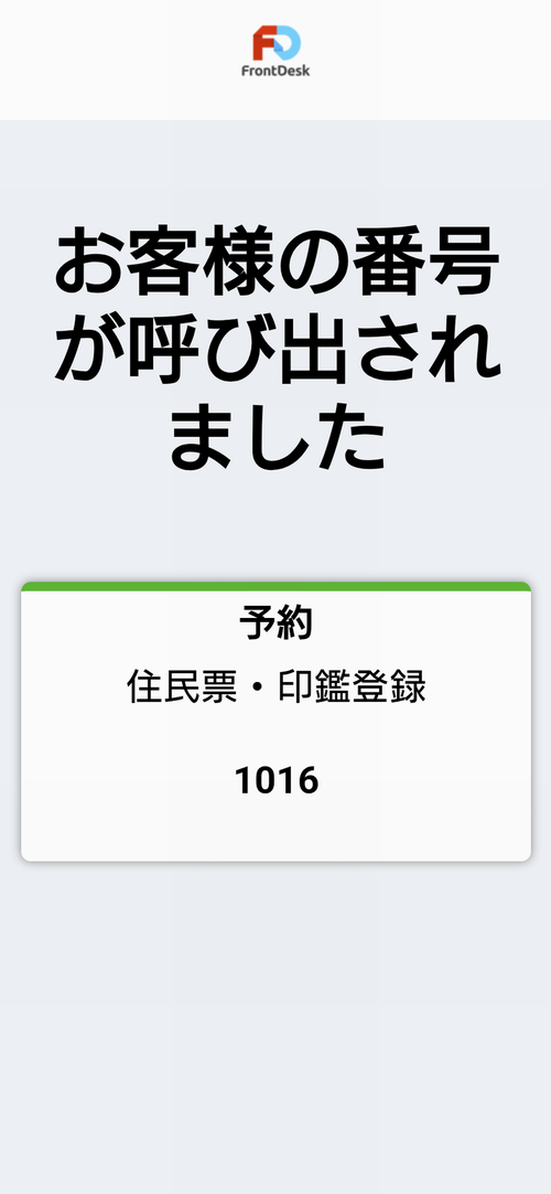 呼び出し番号が画面に表示されます。
