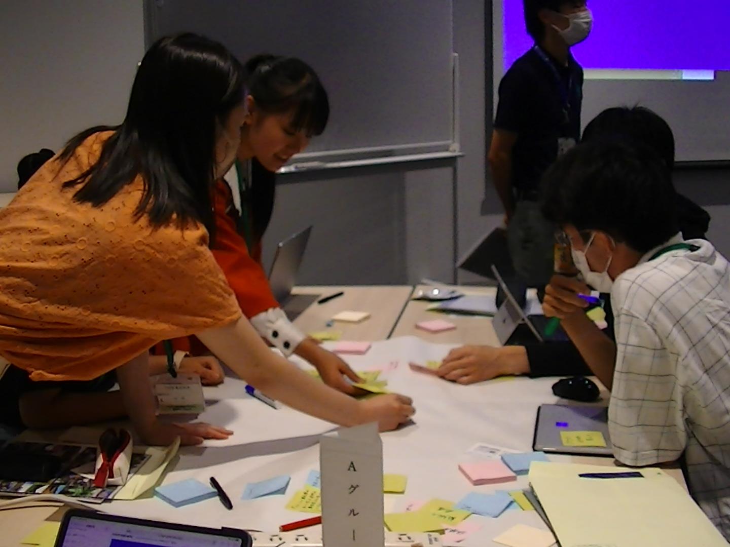 八王子景観100選を活用して、八王子市の日本遺産を若者に知ってもらえるアプリ案を考えてもらうグループワークでは、最初は初めて話す人同士で緊張があったものの、だんだんと会話が弾み、参加者1人1人がアイデアを出し合ったうえで、各グループごとにアプリ案を発表しました。