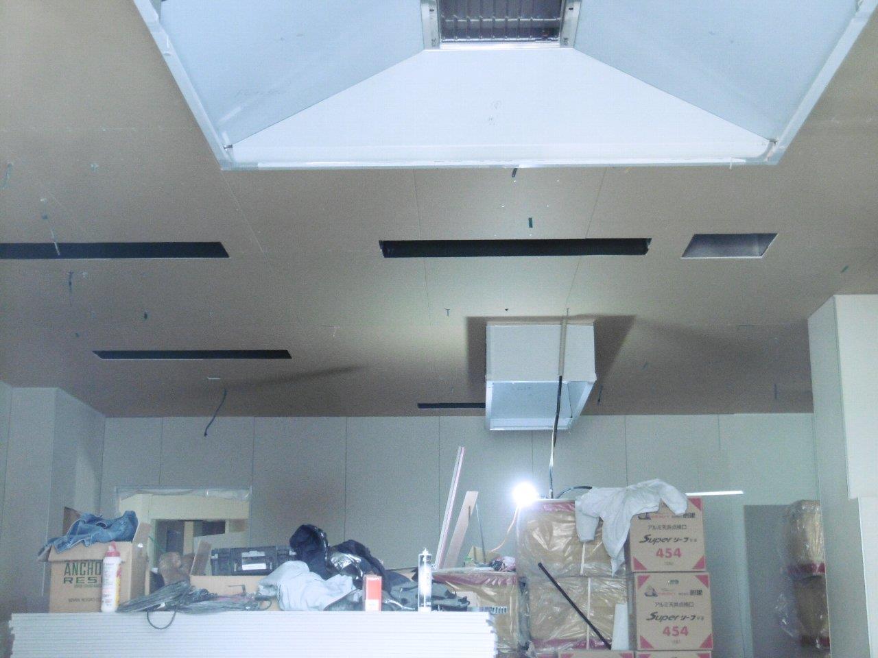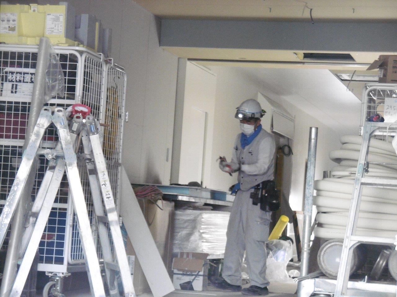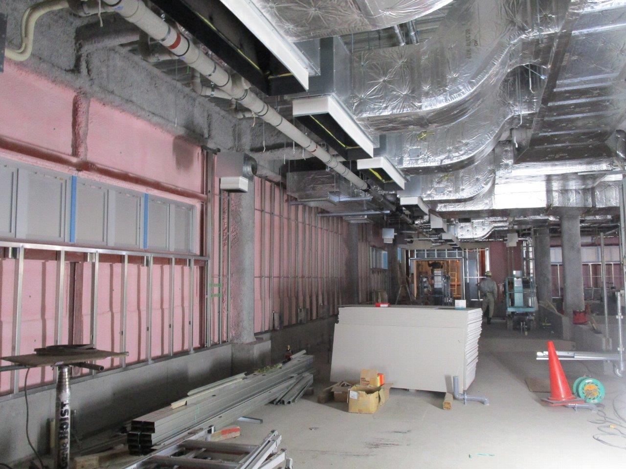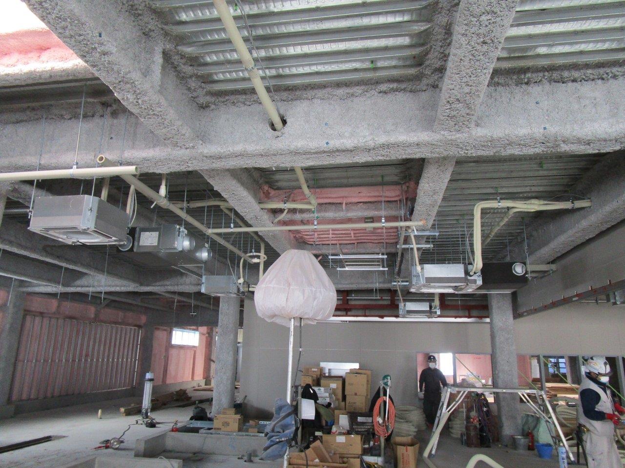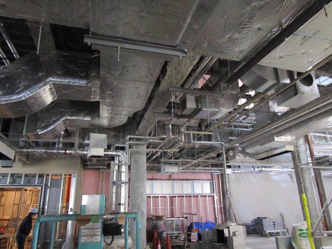 ダクトの吊り込みや、軽量鉄骨で壁や天井の下地を組み立てる作業を行っています。