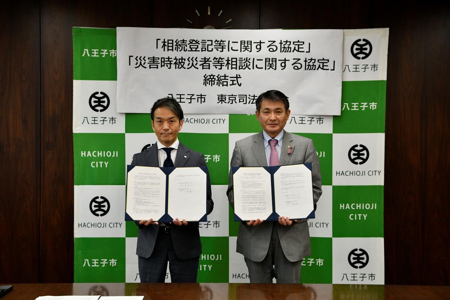 令和7年7月9日、八王子市は、東京司法書士会と次の2つの協定を締結しました。これらの協定は、司法書士の助言を得て、空き家対策、所有者不明土地・建物の管理制度等の周知・活用を図るとともに、災害時には市民の皆様が財産管理に関して相談できる体制を整えることを目的としています。