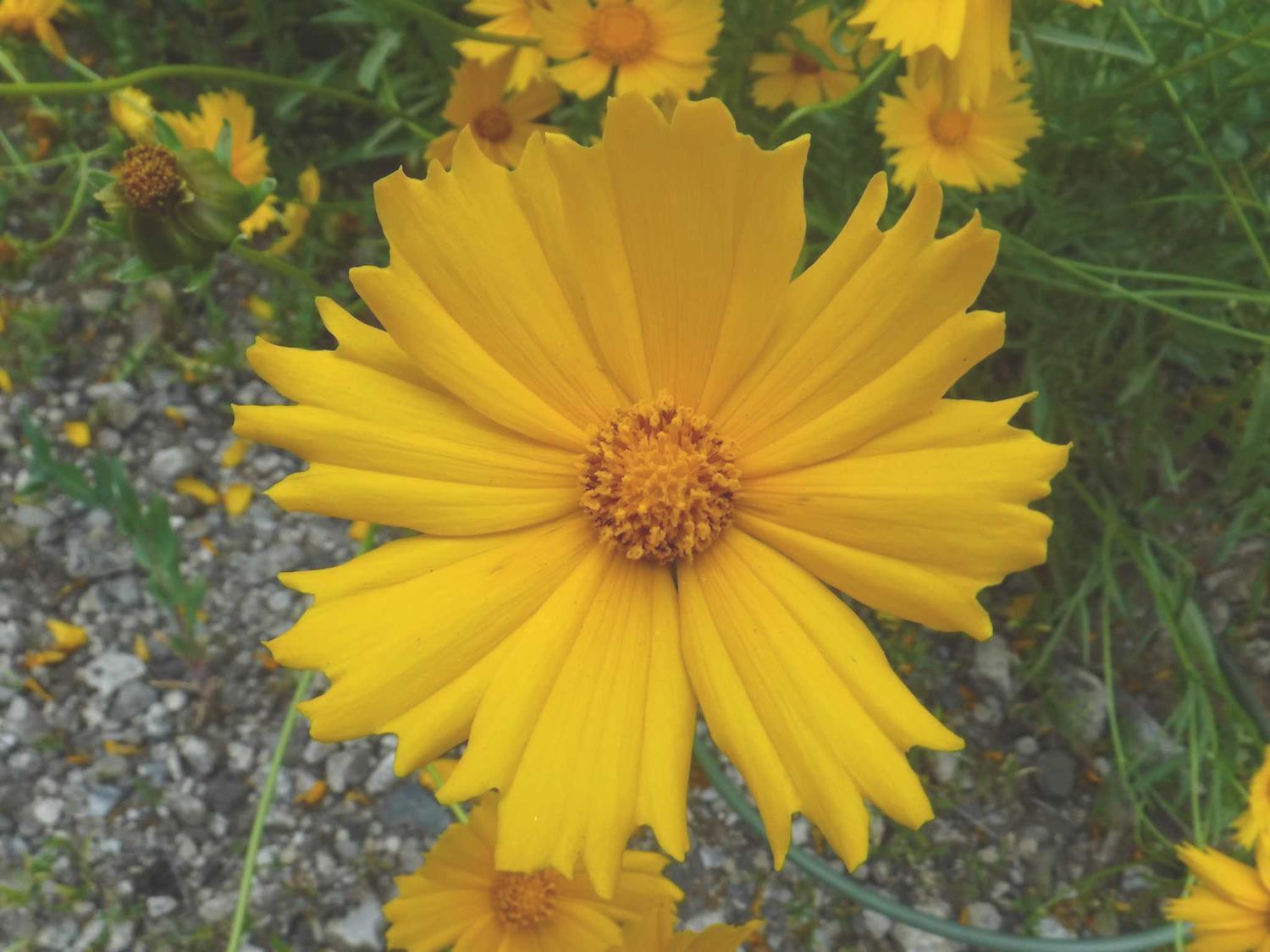 オオキンケイギクは北米原産の多年草で、5月~7月にかけて黄色のコスモスに似た花を咲かせます。かつては園芸植物として流通していましたが、繁殖力が強く、いったん定着してしまうと在来の野草の生育場所を奪い、周囲の環境を一変させてしまいます。そのため、平成18年(2006年)に外来生物法に基づく特定外来生物に指定され、生きたままの運搬や栽培、譲渡などが原則禁止されました。