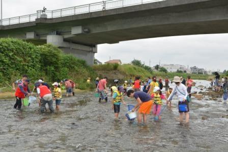 川流れ体験や生物採集・観察・川遊びを通じて、きれいになった浅川のすばらしさを学びます。