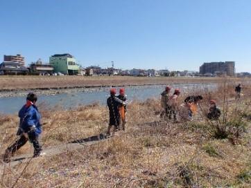 野鳥観察で浅川に色々な生物がいることを学ぶとともに、浅川をきれいにすることで生物の生息環境を整えます。
