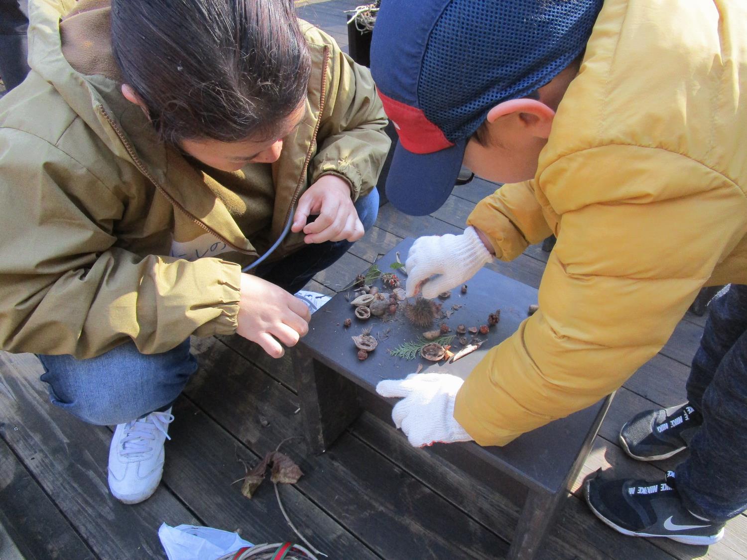 山に登りながらクリスマスリースの材料を探して楽しかったなどの声もあり、子どもたちは