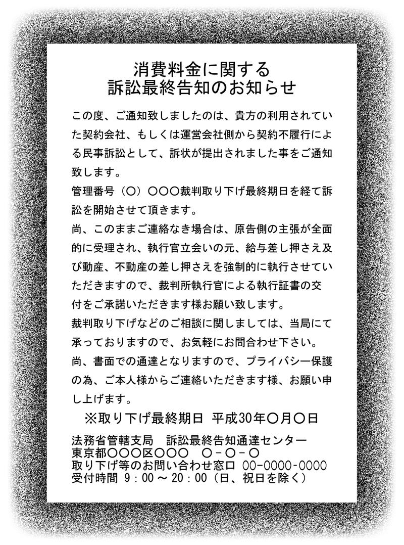 「消費料金に関する訴訟最終告知のお知らせ」はがきに関する注意喚起