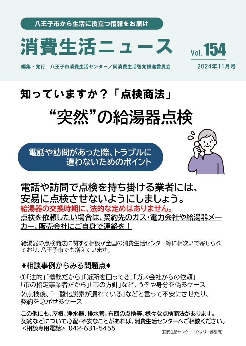 6年11月号 知っていますか?「点検商法」 ”突然“の給湯器点検
