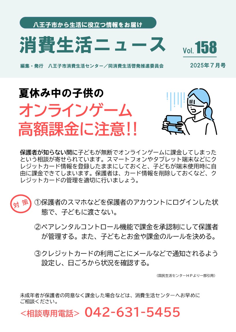 7年7月号 【夏休み中の子どものオンラインゲーム高額課金に注意!!】
