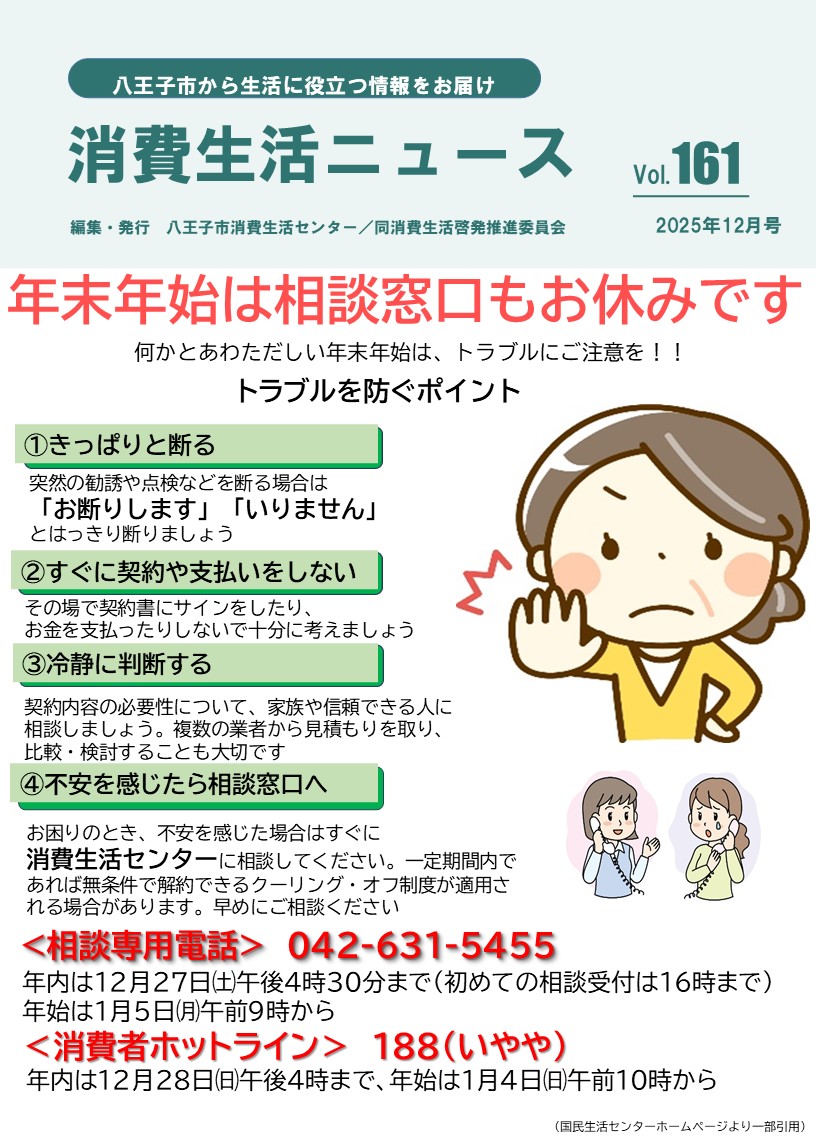 迷わず、八王子市消費生活センターにご相談ください。