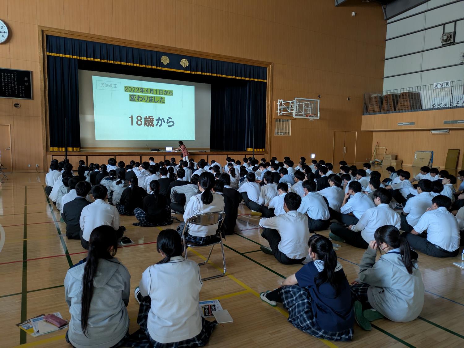 成年年齢引き下げにともない消費者トラブル防止のための講座を行いました。参加した生徒からは、「将来の役に立った。」「契約やクーリング・オフ制度についてなど、新しい知識を得ることができた」との声をいただきました。