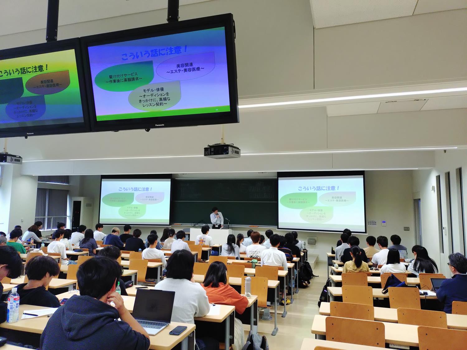 高校・大学において、成年年齢引き下げや契約の知識、若者を狙った悪質商法等への注意喚起を盛り込んだ出前講座を学校のニーズに合わせたオーダーメイドにて実施しています。