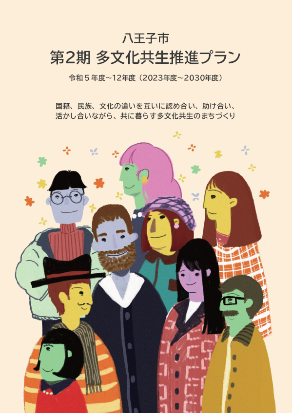 本市では、平成25年(2013年)に「国籍、民族、文化の違いを互いに認め合い、助け合い、活かし合いながら、共に暮らす多文化共生のまちづくり」を基本理念とする「多文化共生推進プラン」を策定し、外国人へのコミュニケーションや生活支援、外国人留学生の支援、多文化共生意識の啓発、海外都市との交流等を実施してきました。平成30年(2018年)の改定を経て、令和5年(2023年)3月、これまでの社会情勢の変化や、施策の進捗状況を反映し「第2期八王子市多文化共生推進プラン」を策定しました。