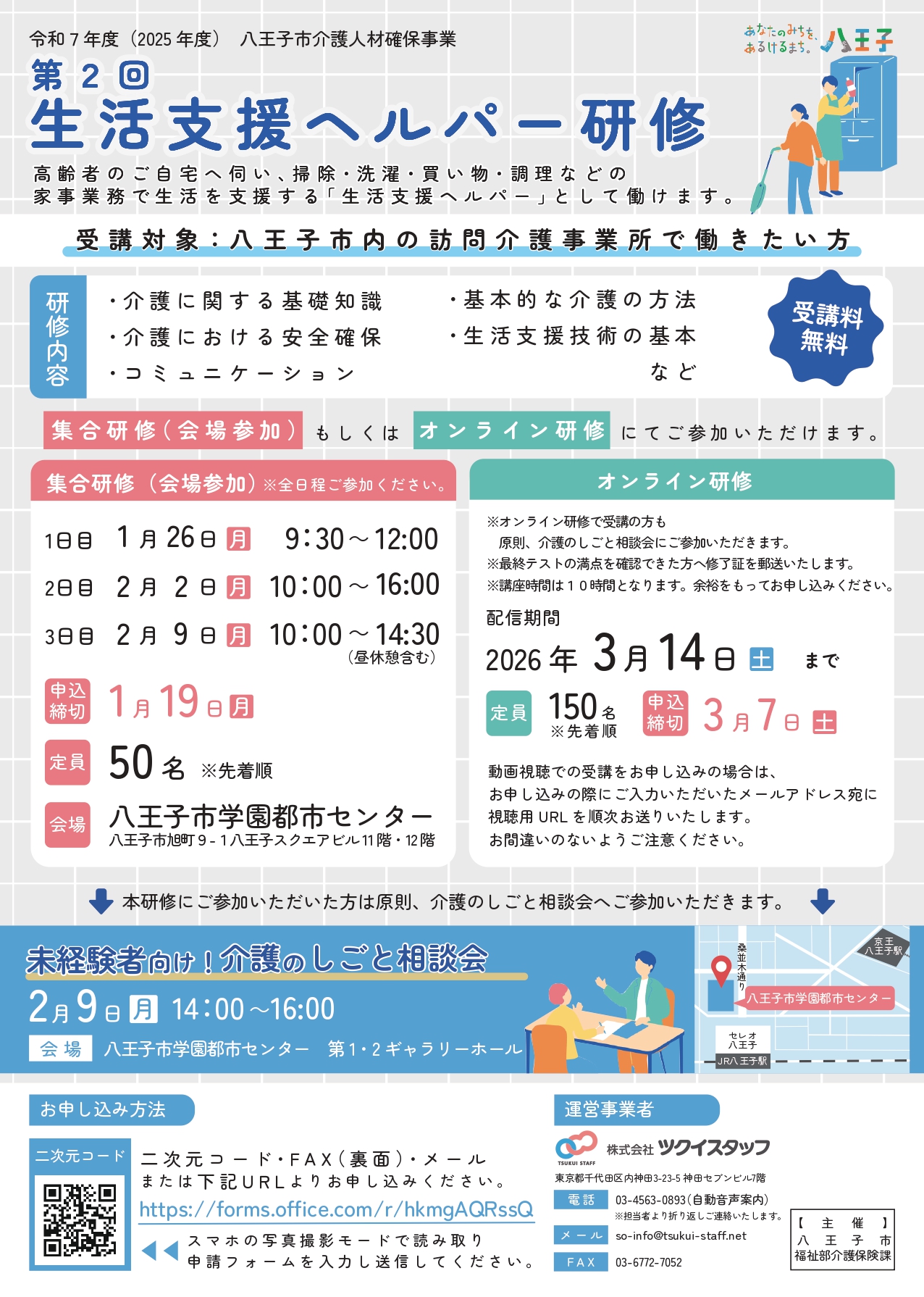 八王子市内の介護事業所で「生活支援ヘルパー」としての就労を希望する方