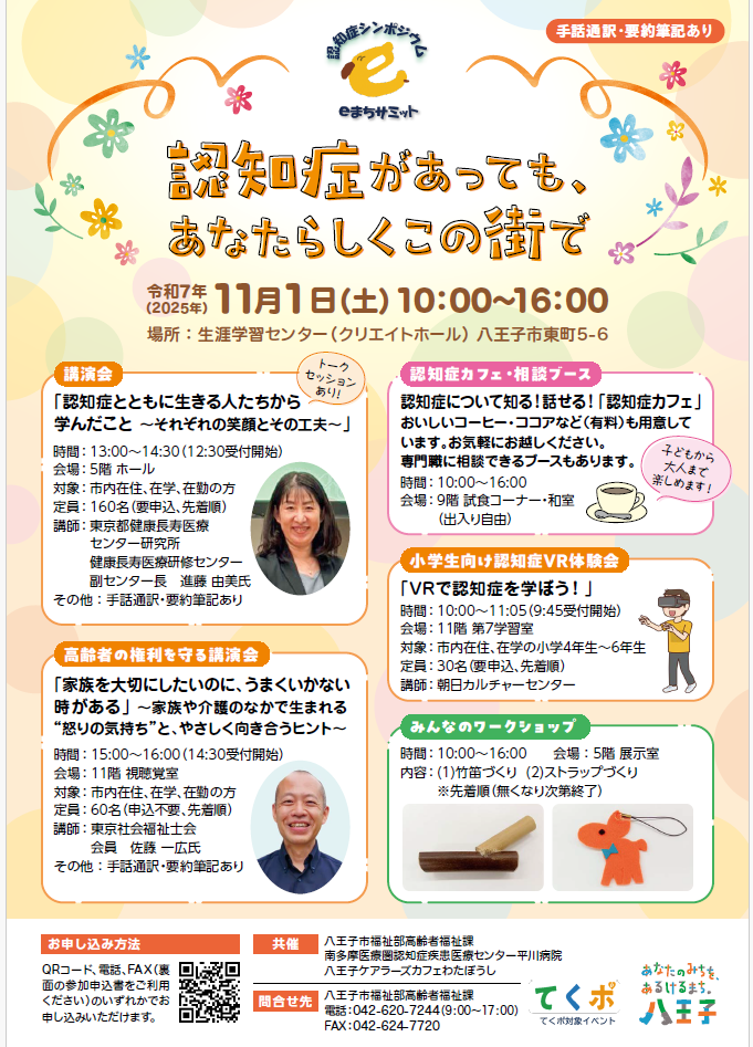 - トップ > くらしの情報 > 高齢・介護・障害・生活福祉 > 認知症について > 認知症関連イベント > 【11/1開催】認知症シンポジウム eまちサミット~認知症があっても、あなたらしくこの街で~