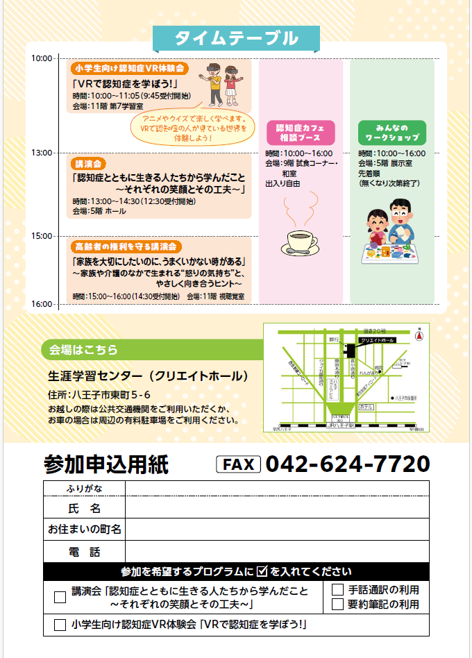 八王子市福祉部高齢者福祉課、南多摩医療圏認知症疾患医療センター平川病院 、八王子ケアラーズカフェわたぼうし