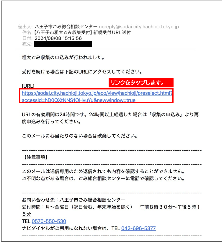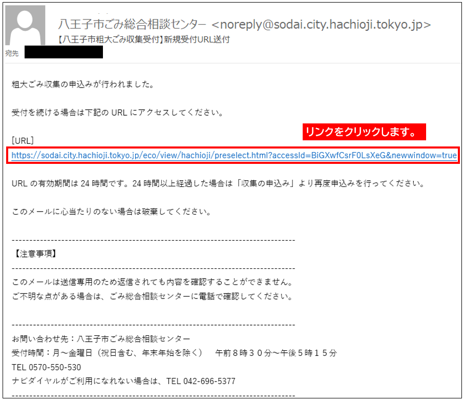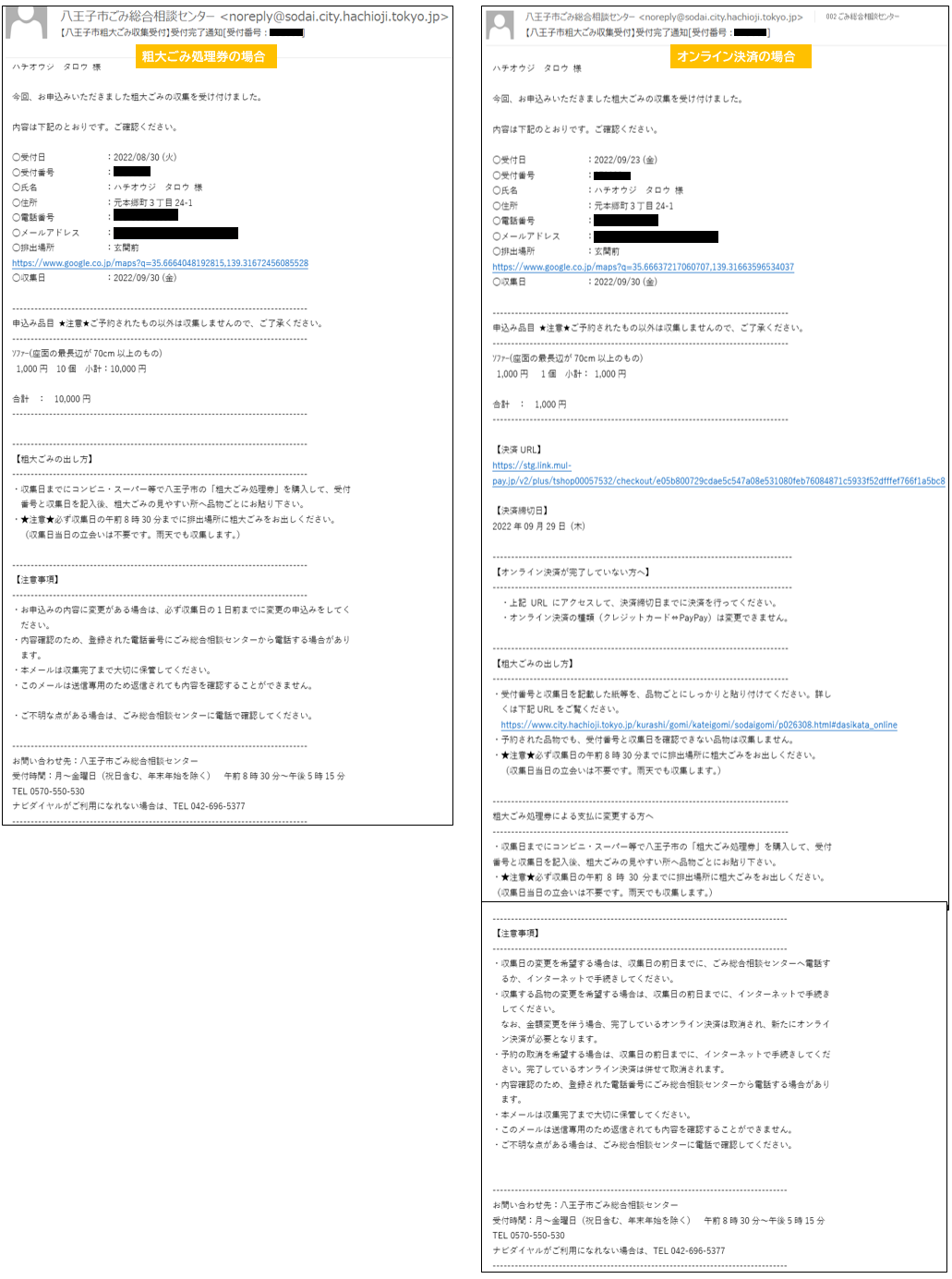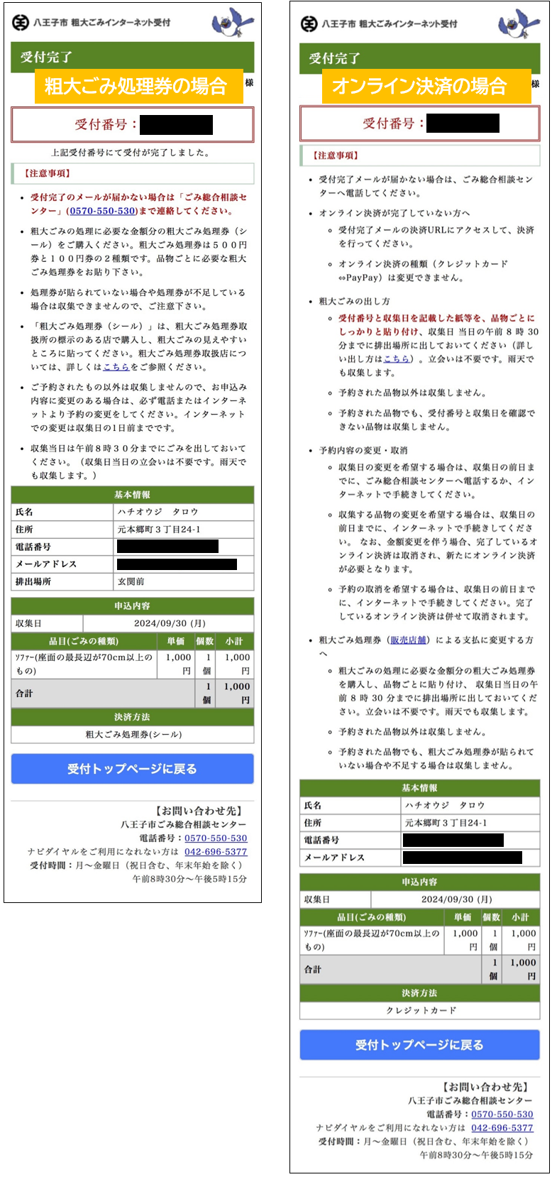受付完了後に登録したメールアドレス宛に届く受付完了メールです。