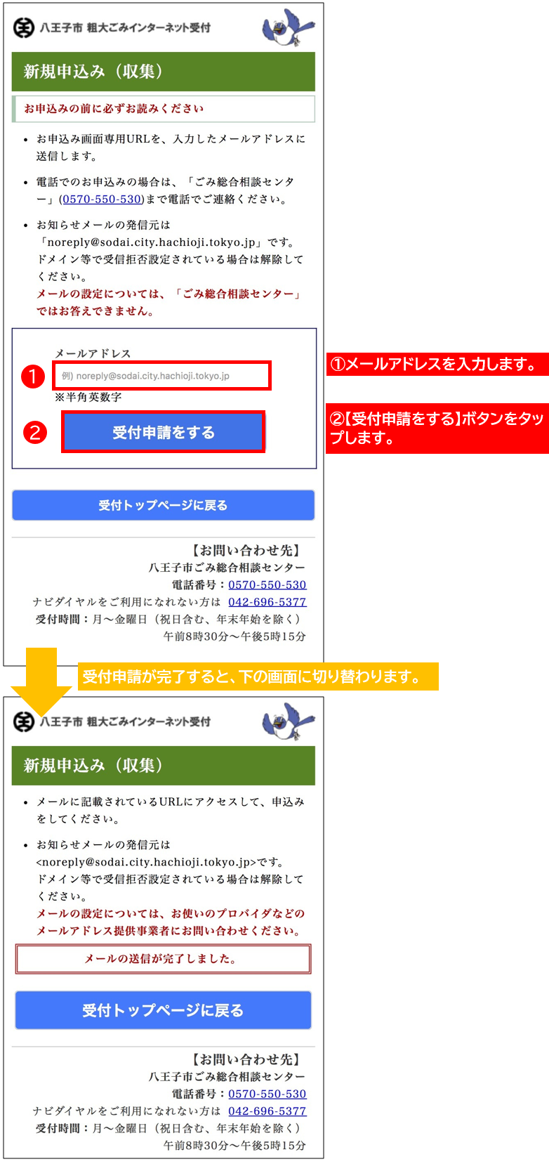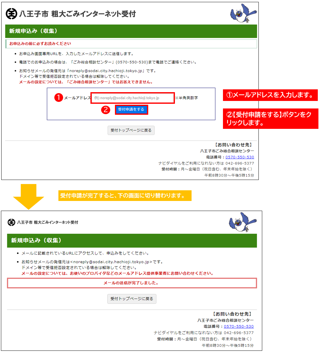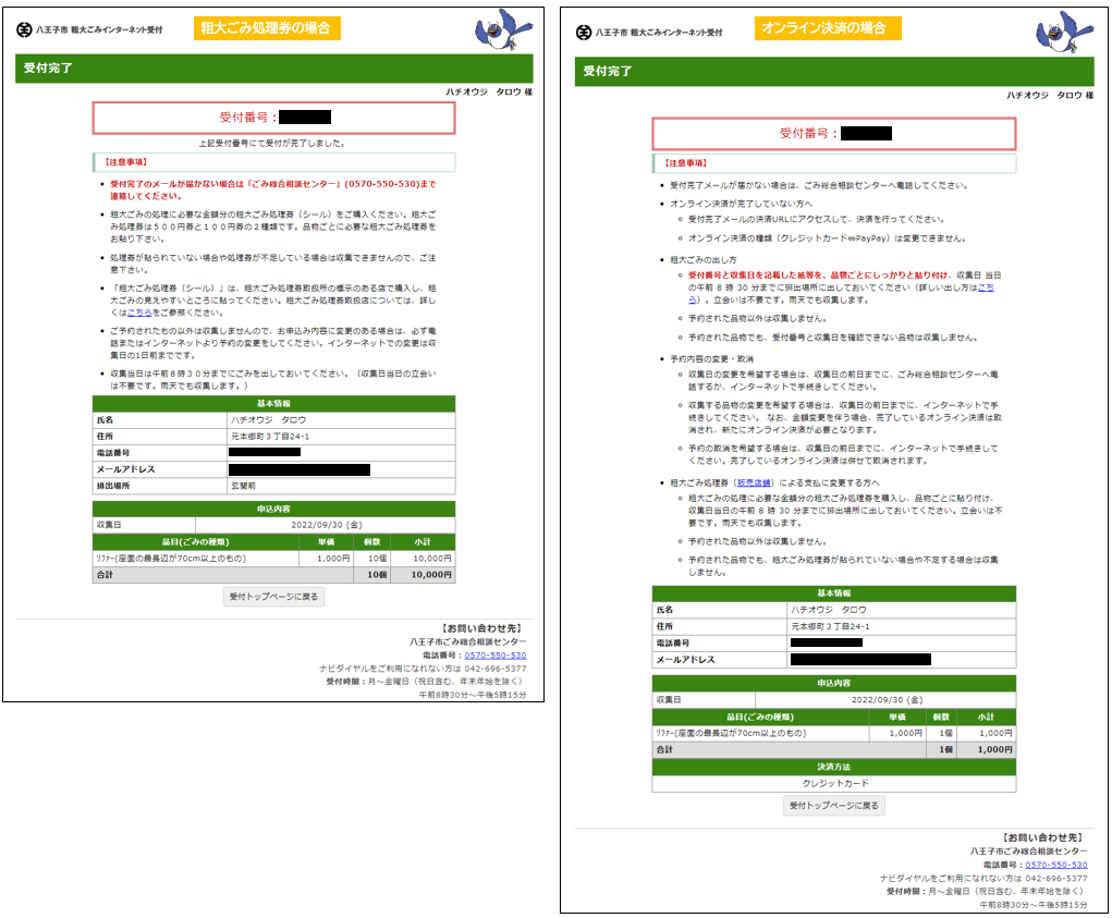 受付完了後に登録したメールアドレス宛に届く受付完了メールです。