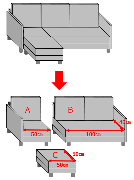 分割できるソファの収集料金は、分割後の用途及びサイズで個別に確認します。