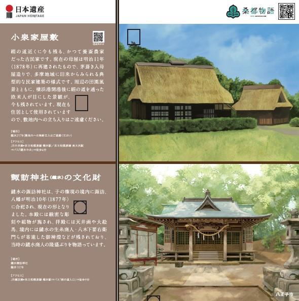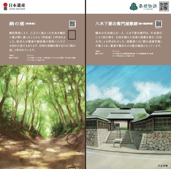 11月4日・5日に開催する「日本遺産フェスティバル in 桑都・八王子」の開催に向けてまちを盛り上げるため、八王子駅北口エリアにある電線共同溝の地上用機器に、本市の日本遺産の構成文化財を紹介するラッピングをしました。八王子駅周辺にお立ち寄りの際は、ぜひご覧ください。