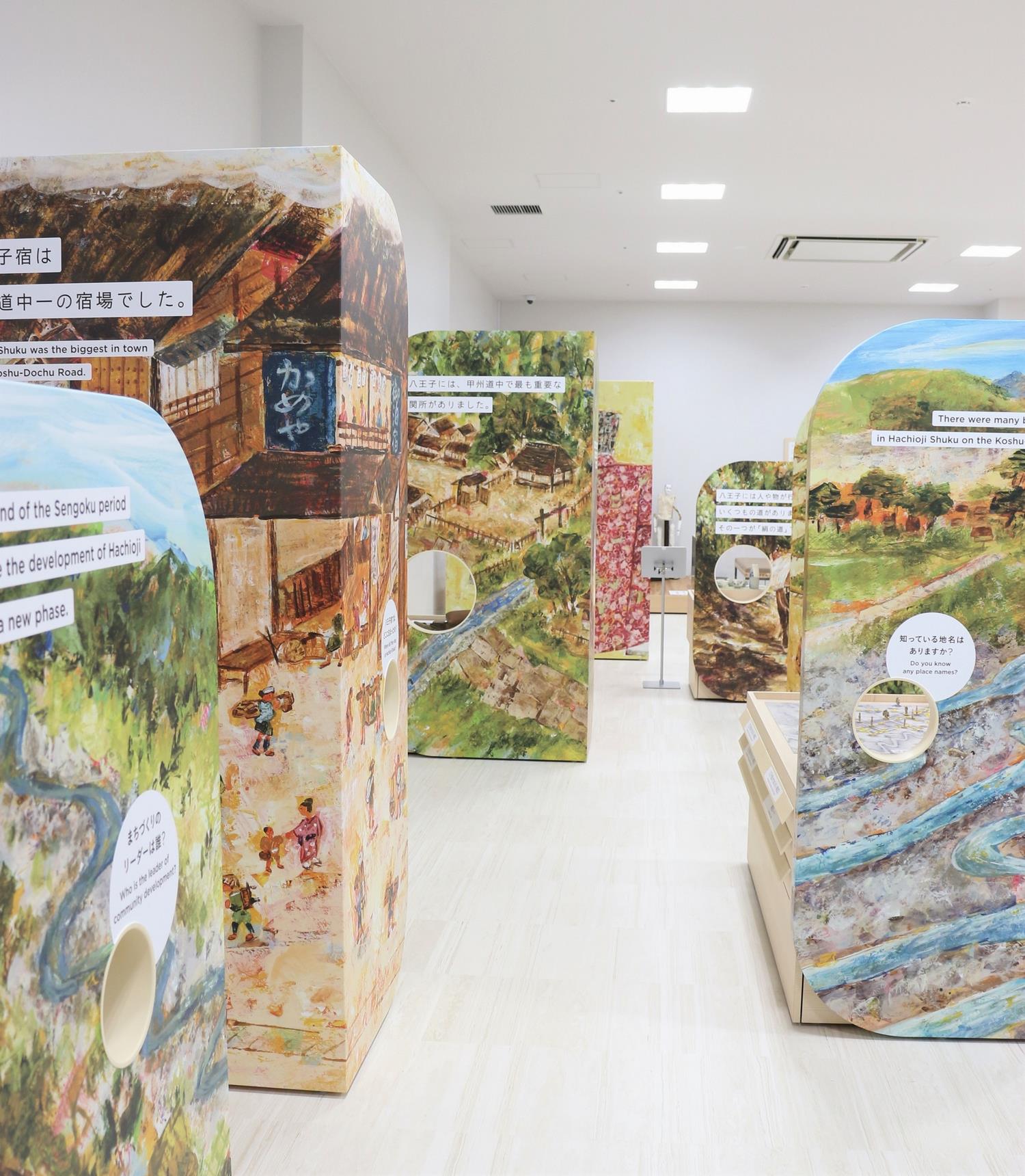 八王子を象徴する18枚のイラストが彩る館内で、さまざまな資料から八王子の魅力を感じてください。