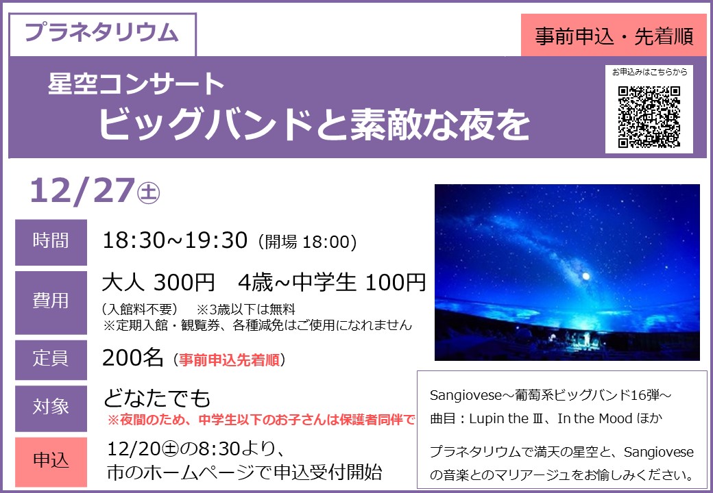 - トップ > 施設案内 > 文化施設・ホールなど > プラネタリウムの観覧