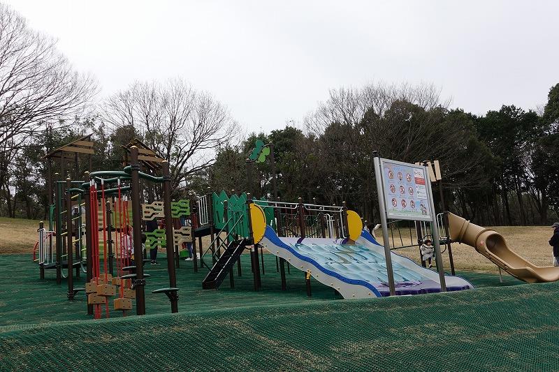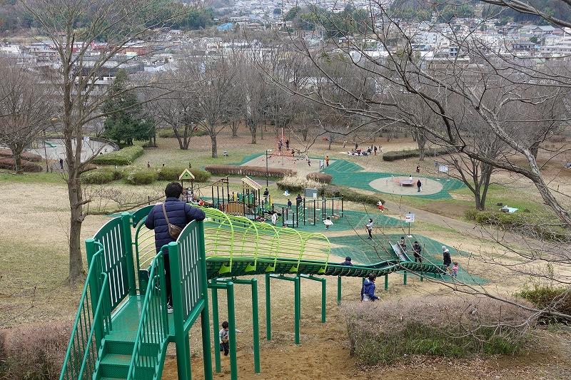 斜面地を活かした大型滑り台や大型複合遊具などが設置されており、高低差を活かした展望台からは富士山を眺めることができます。