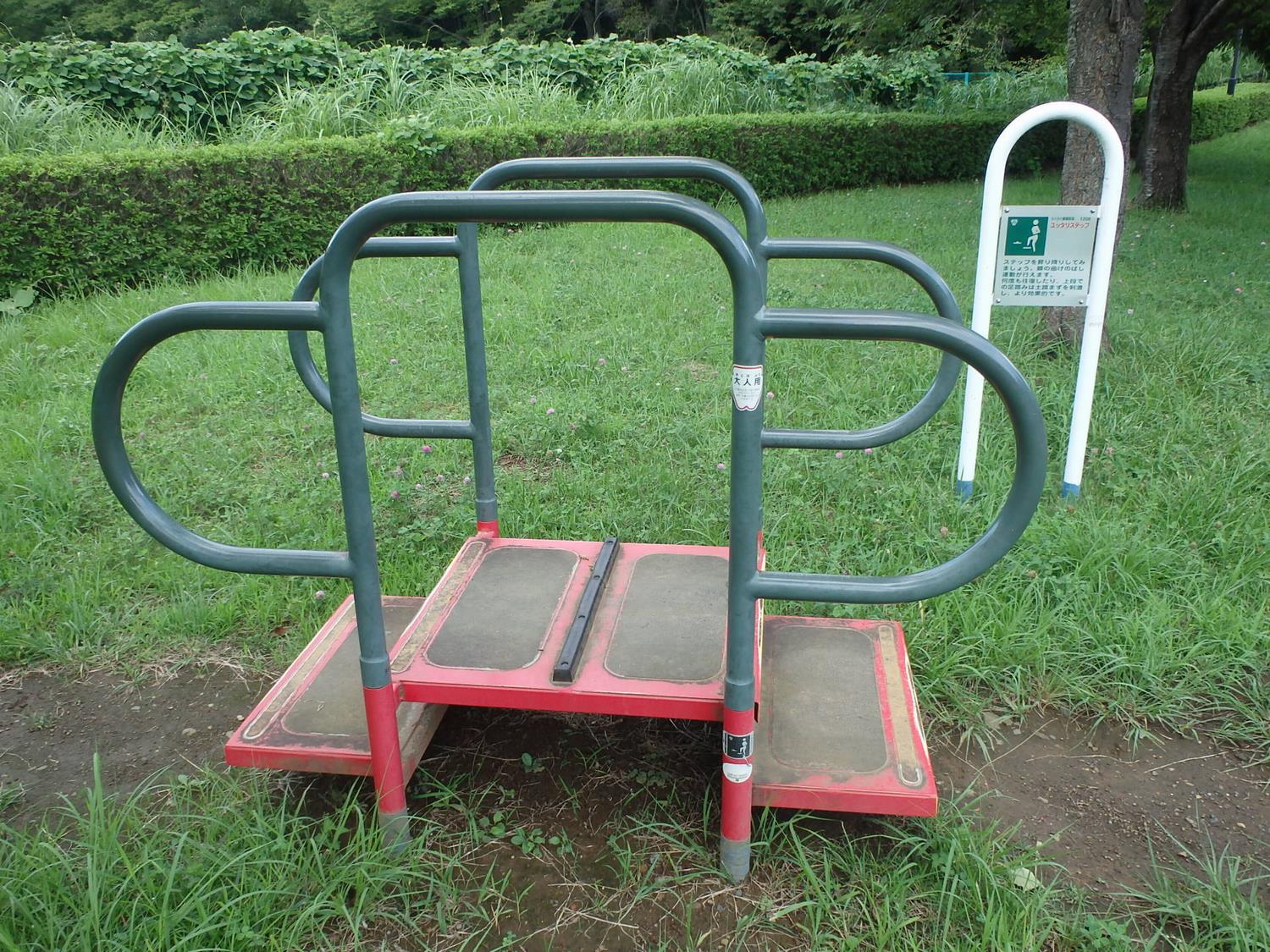 ◆健康遊具は、ぶらぶらストレッチ、ゆったりステップ、マッサージベンチ、そろそろ平均台がある
