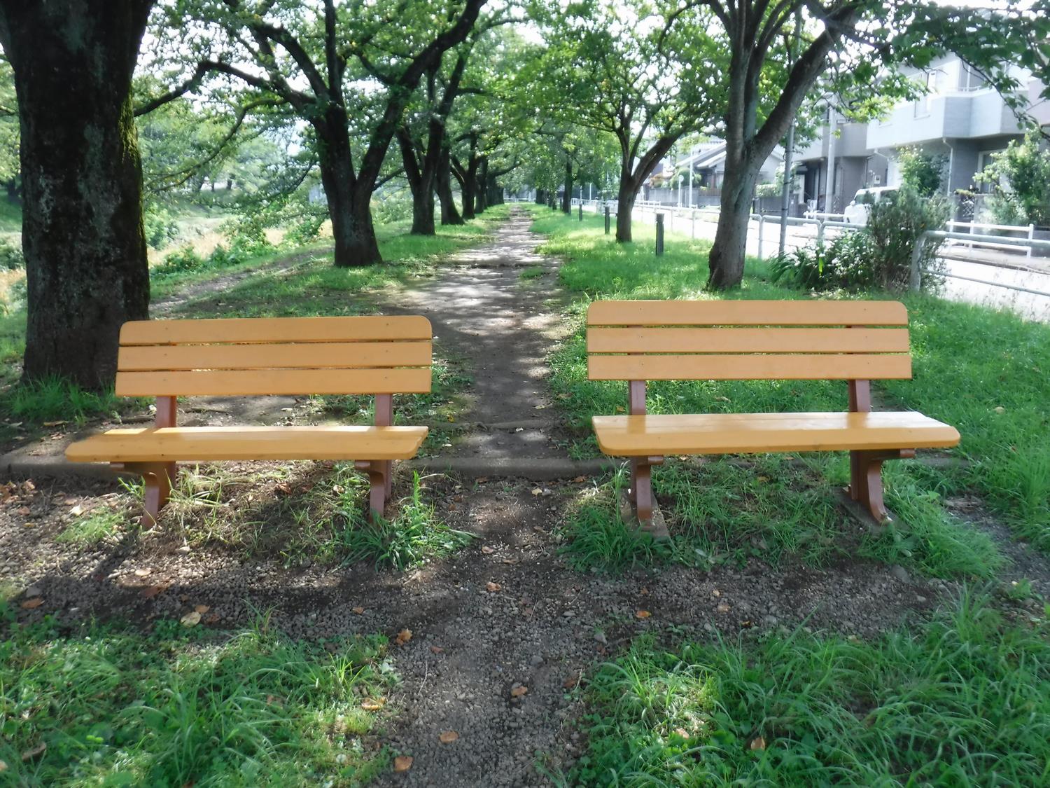 浅川沿いに桜並木が続きます。春には満開の桜、夏には新緑が楽しめる遊歩道は地域の方々に人気の散歩コースです。