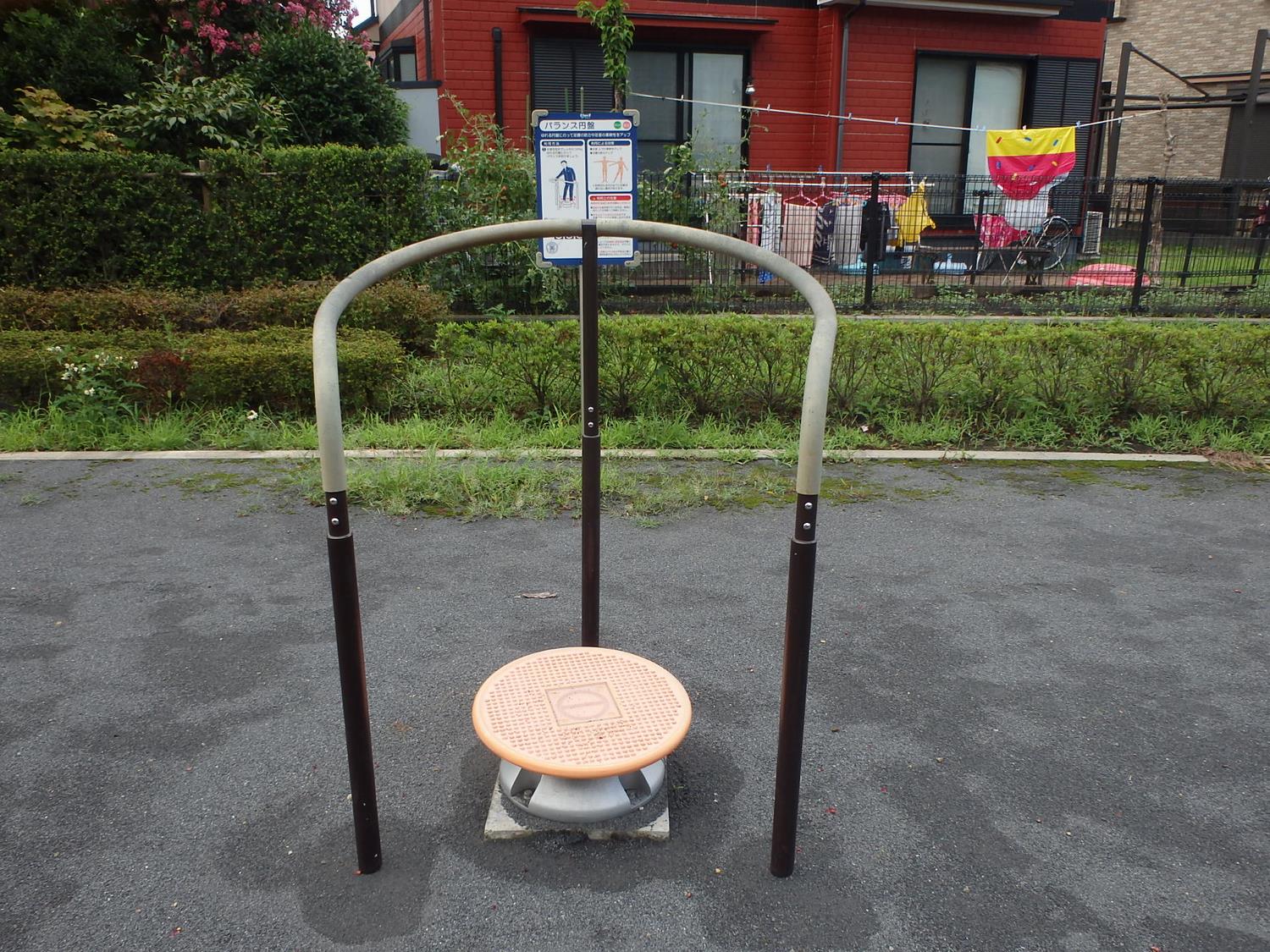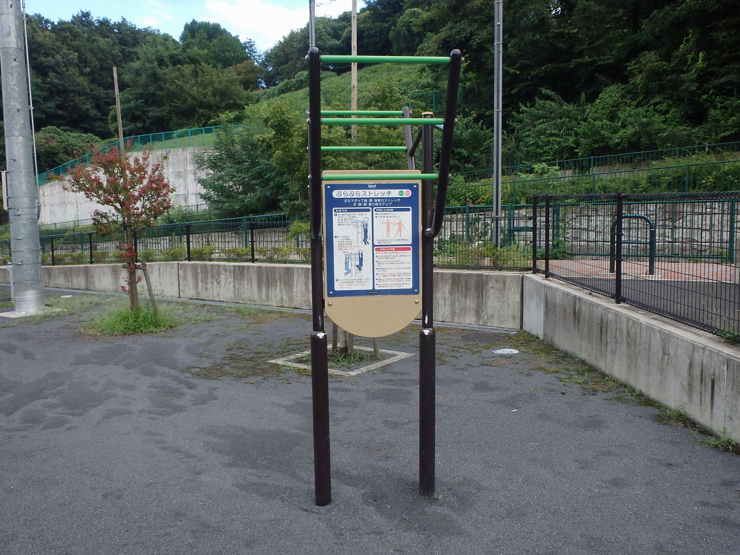 川沿いの公園で遊歩道の途中にあるので、お散歩前やお散歩中に健康遊具を使ってストレッチができます。ぶらぶらストレッチやバランス円盤などがあります。疲れた体を休められるベンチもあるので、川の音を聞きながらゆったりした時間を過ごせます。