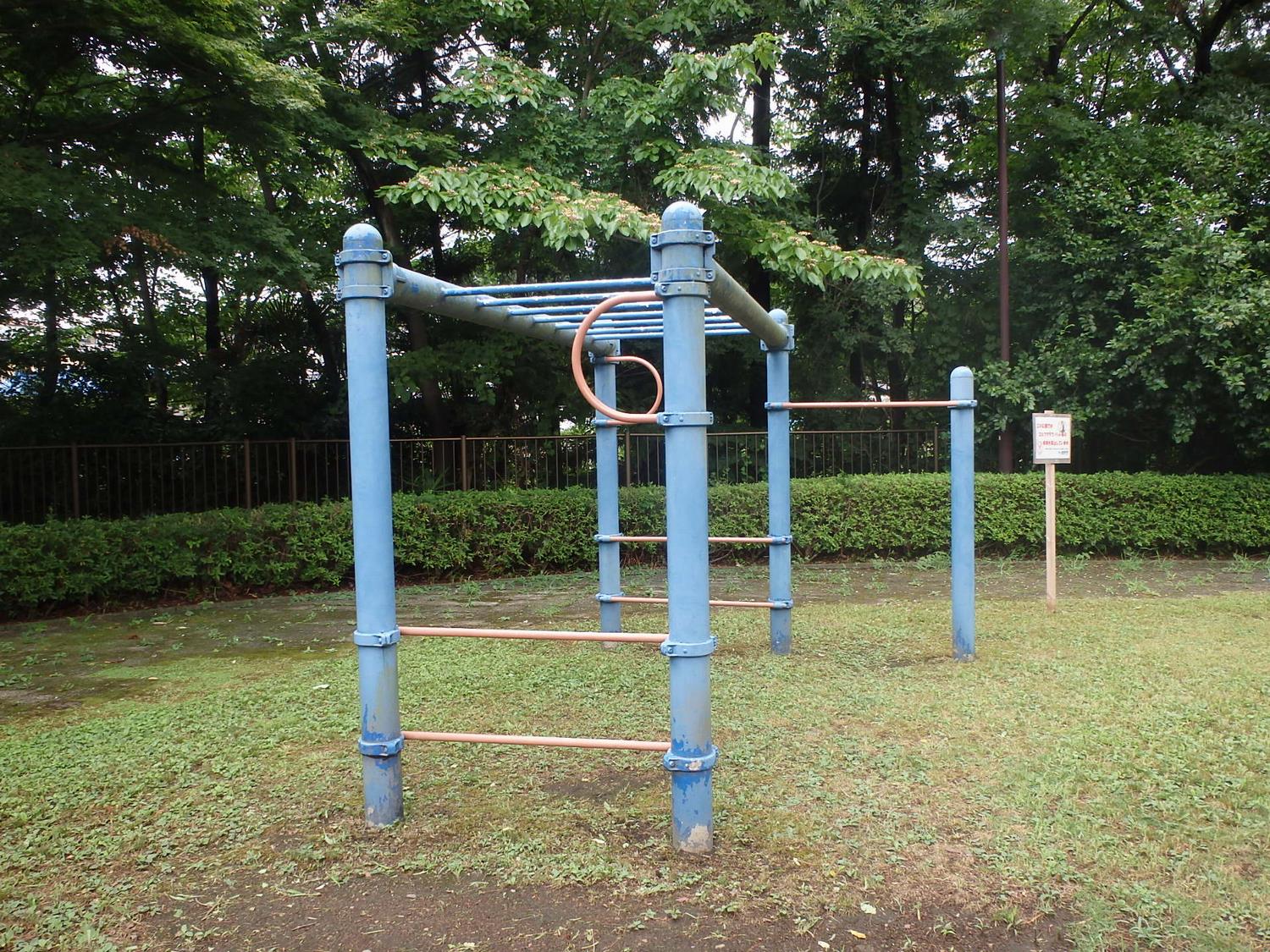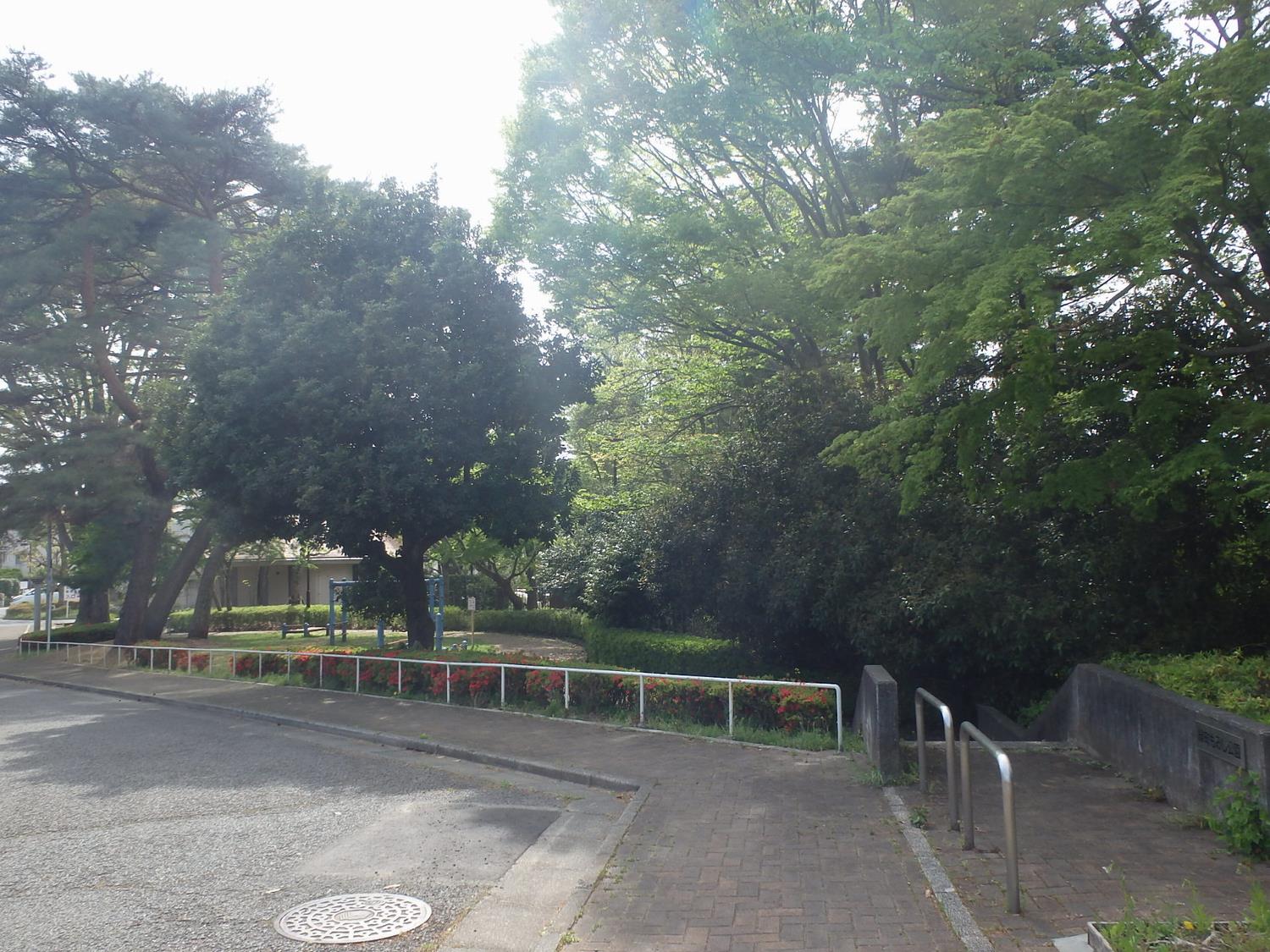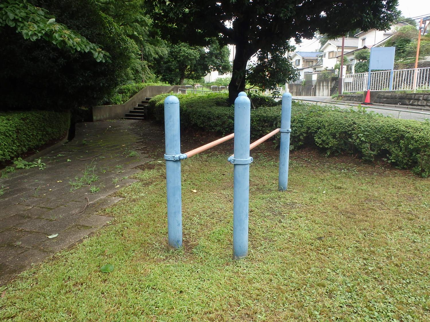 団地の横にある縦長な静かな公園です。木陰の中でゆったりと健康遊具で体力づくりなんていかがでしょうか。健康遊具は、スカイラダー、平行棒、横飛び越しがあります。