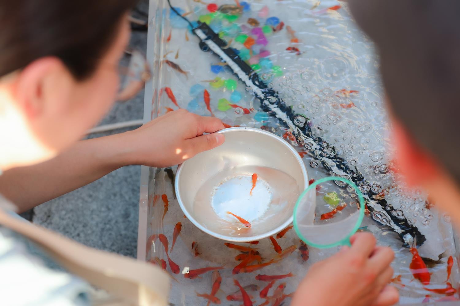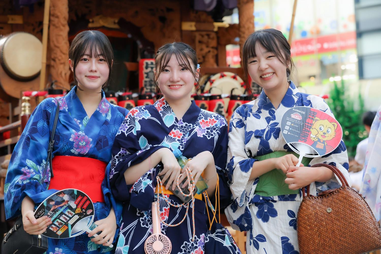 4年ぶりの開催ということもあり、来場者の顔も期待に満ちた様子で、猛暑にも関わらず皆イキイキしていました。神社の境内で露店が何店舗か開かれ、たこ焼きやじゃがバターなどお祭り特有の食べ物を嬉しそうに頬張る来場者の姿に、こちらも顔がほころびます。