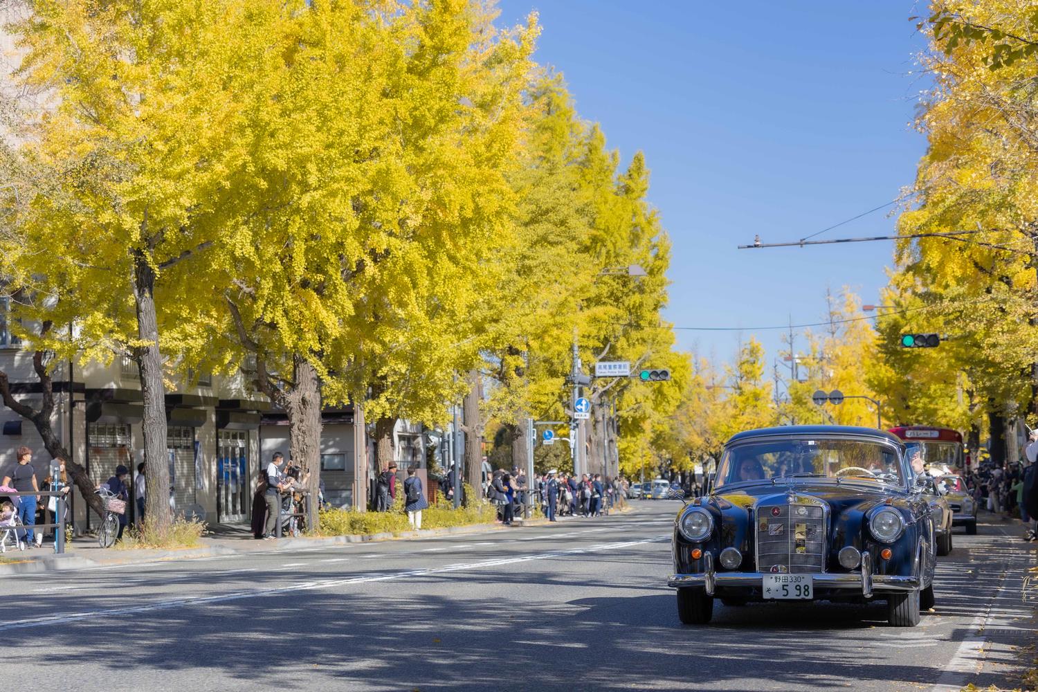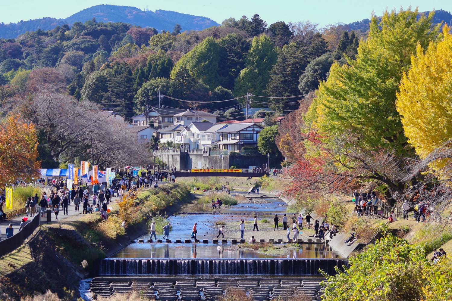 例年より気温が高かったこともあり、色づきに若干の心配がありましたが、 甲州街道のいちょうは綺麗に色づいていていました。陵南公園や各会場にはたくさんの出店が並び、甲州街道を走ったエコカーやオープンカーにはたくさんの人が手を振るようすも。夕日に照らされるいちょうもとても美しく、最後まで来場者を魅了していました。子ども手作り甲冑教室