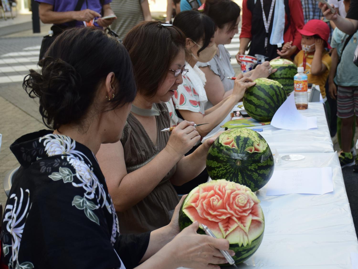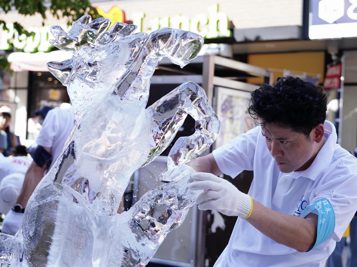 8月2日の初日のメインは氷の彫刻展。炎天下の中作品を作る方は汗だくでしたが、見応えある作品ばかりで多くの見物客は「すごい」と歓声を上げながら写真を撮っていました。黒塀通りは、若い女性たちが黒塀と風鈴をバックに写真を撮り「インスタにあげよう」と話していました。夜の宵宮の舞では八王子芸妓をひと目見ようと1時間以上前から見物客が詰めかけ、大賑わいでした。平和展~こどもたちに伝えたい この想い