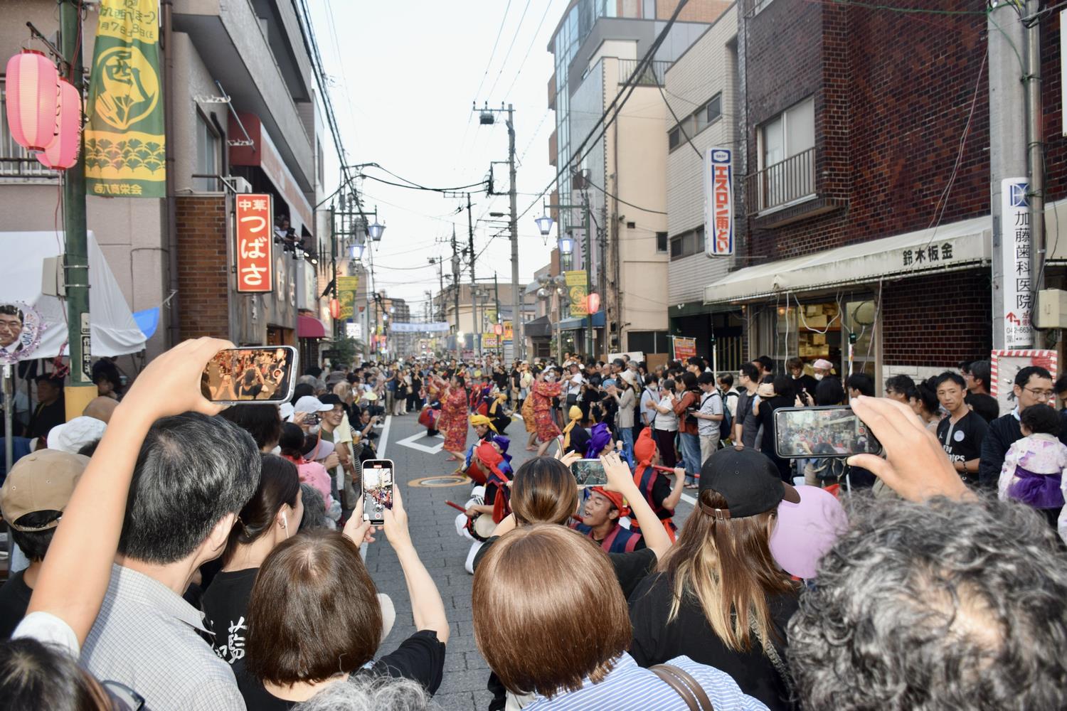 踊れ西八夏まつりが9月7日~8日の夕方4時から西八王子北口駅前通りを中心に開催されました。9月7日は「阿波踊り」8連、「エイサー」5チームが出演したほか、沢山の模擬店や地元商店などで大賑わいでした。それぞれの演者さんたちの迫力ある演技に見物客から惜しみない拍手が送られていました。八王子まつり