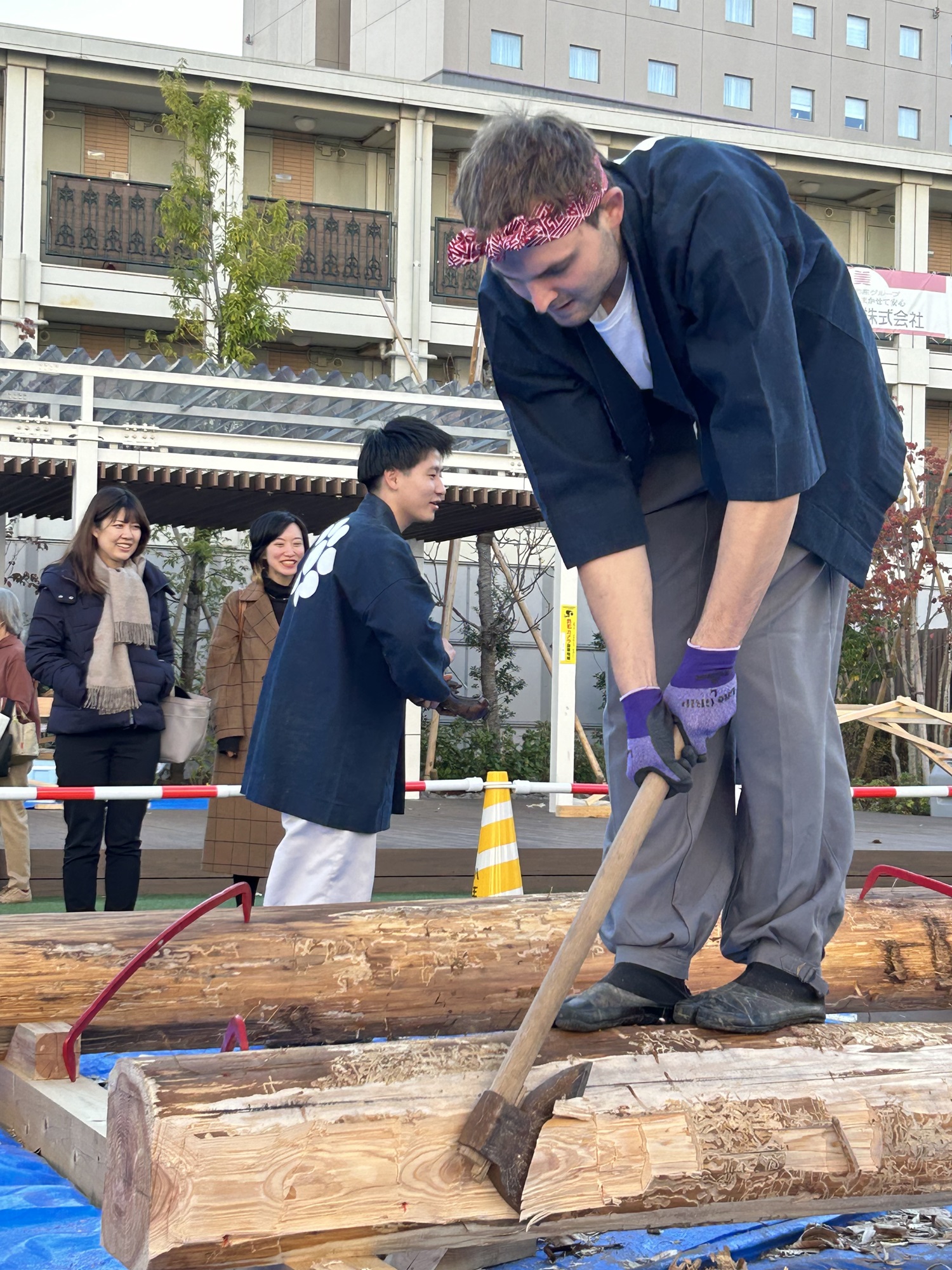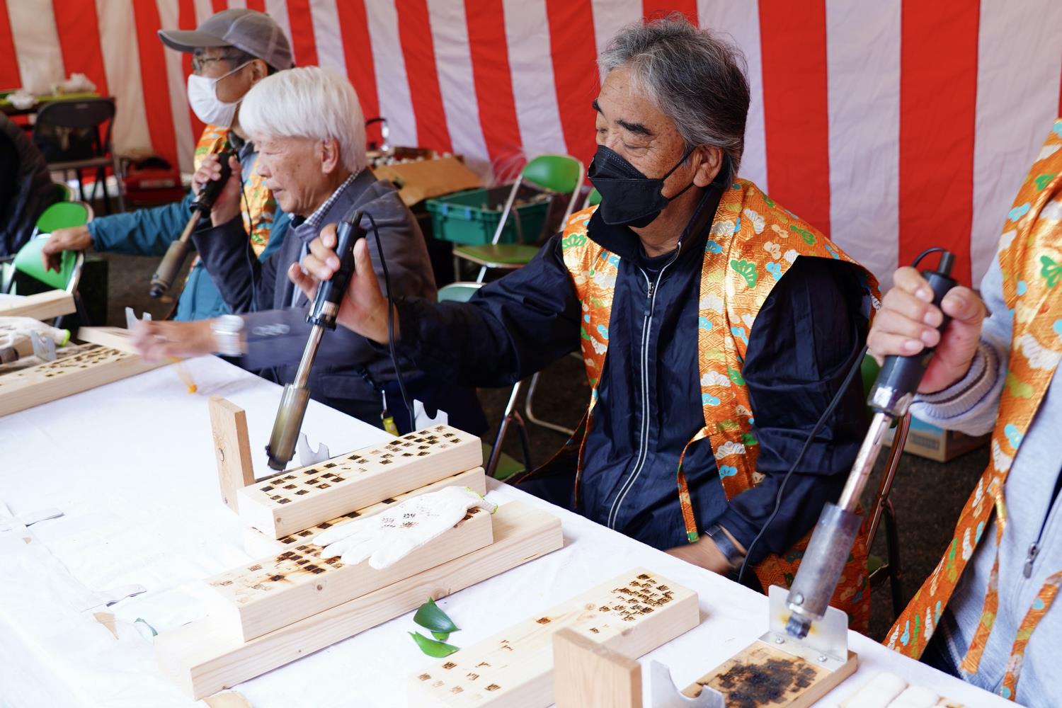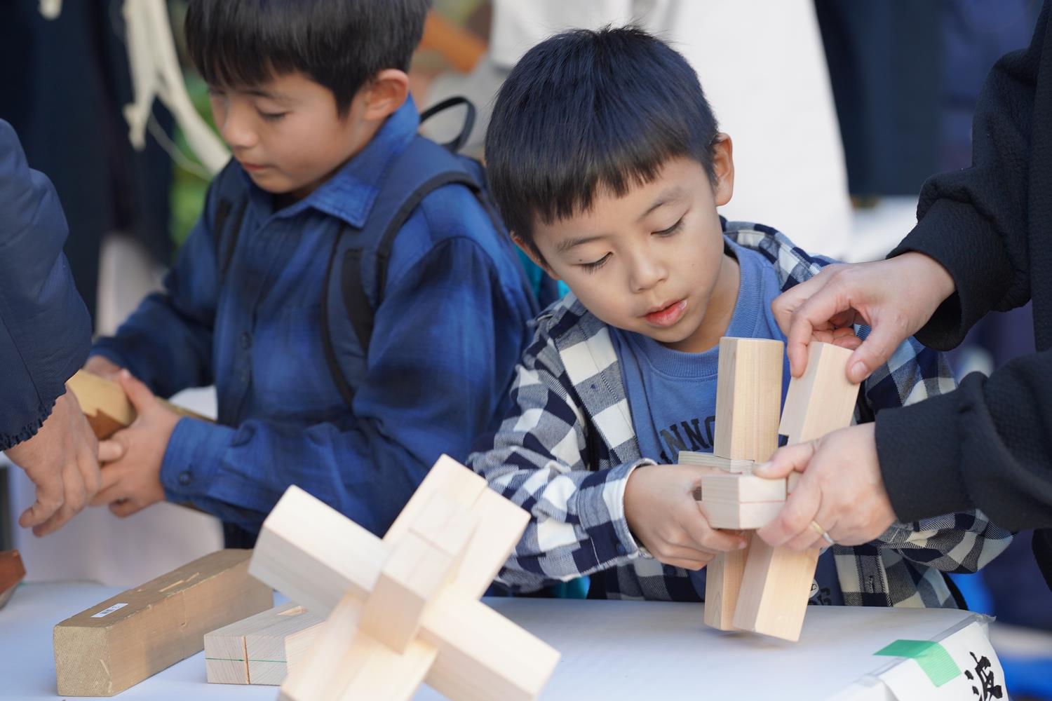 八王子市のものづくりを体験できるイベントが11月23日・24日の2日間、市内の工場や工房などで開催されました。23日はえきまえテラスで(株)吉匠建築工藝の宮大工による手斧(ちょうな)技術の見学、カンナ削りや木組み体験が行われました。参加者の多くはカンナ削りが思いのほか難しそうで大工さんの力を借りながら楽しそうに体験していました。削り節は薄くて軽いので子供たちに大人気。削り節をお花に見立てまるでブーケのようで素敵なお土産になっていました。