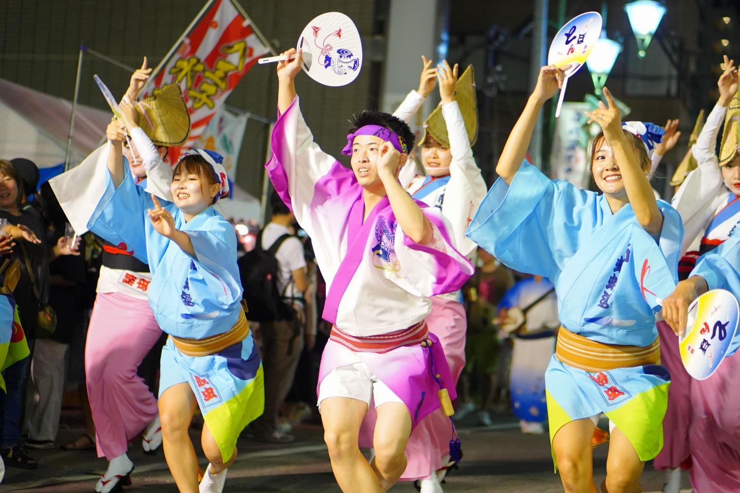 西八王子の街に熱気をもたらした「踊れ西八夏まつり」初日。1日目は阿波踊りとエイサーが繰り広げられ、勇壮な太鼓の響きや凛とした笛・鉦の音色と掛け声が会場に響きました。